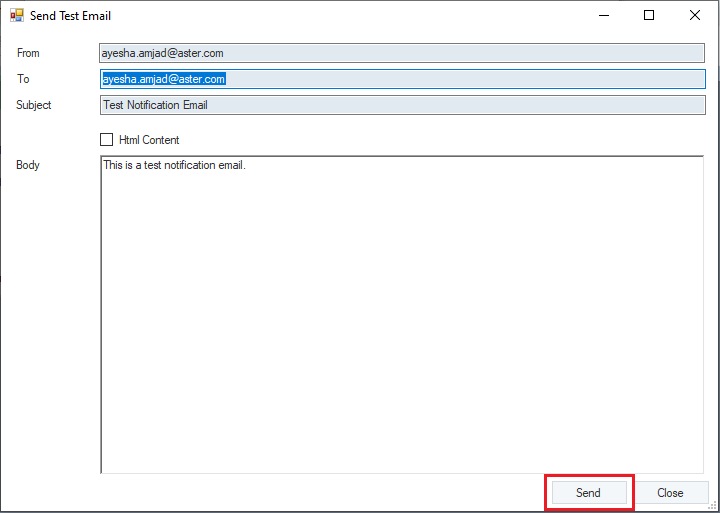 Test your connection by clicking on Test Connection, this will give you the option to send a test mail to the login email.