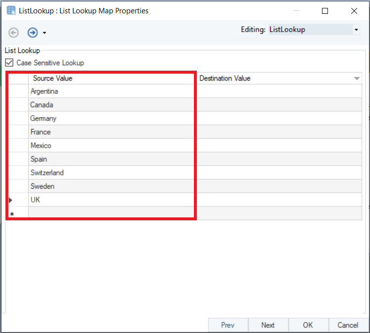 This is one way of specifying the lookup values. However, there can be a lot of source values and typing them manually can be a tedious task. There is a more efficient way of doing this in Centerprise.