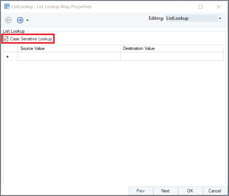 Here, the first option we have is the Case Sensitive Lookup checkbox which is always checked by default. When this option is checked, the List Lookup will look up values on a case sensitive basis. If you do not want to perform a case sensitive look up, you can uncheck this option.