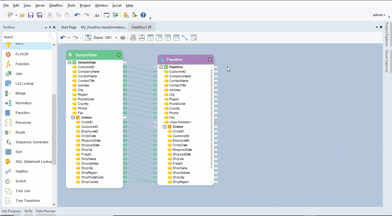 For this purpose, we will use the Passthru Transformation object.
