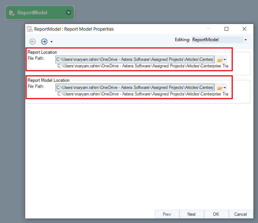 Root Node: Object Path – ReportModelTrans