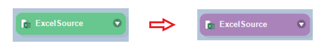 The header of the ExcelSource object will change to purple indicating that the ExcelSource object is now converted to a transformation object.