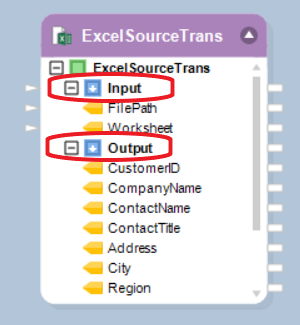 Output node: On expanding this node, you will be able to see the data fields in the excel source file. Map these fields to other objects in the dataflow through the output mapping ports.