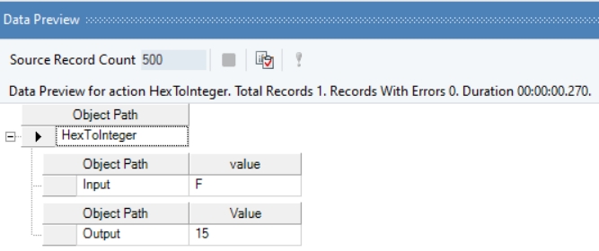 In the output window, you can see that the Integer value 15 has been returned, corresponding to the provided hex value, F.