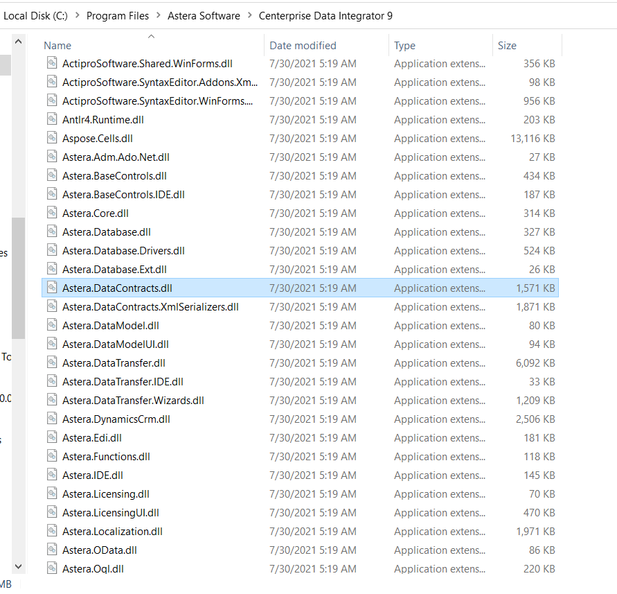 The only .dll file which we need to reference here is the Astera.DataContracts.dll. This can be found in Astera Data Stack’s Server installation folder.