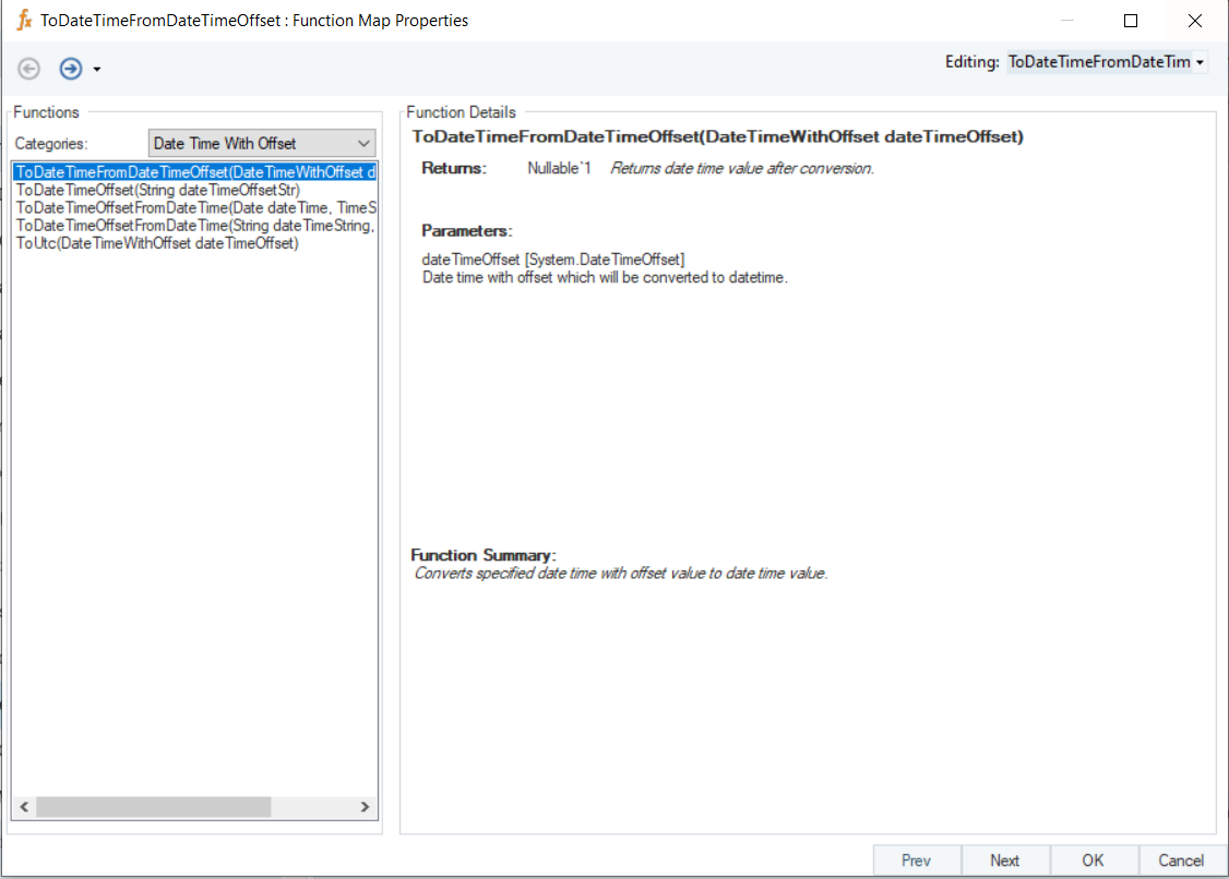 In this example, we will pass a date time offset value to the function transformation object using a Variables object.