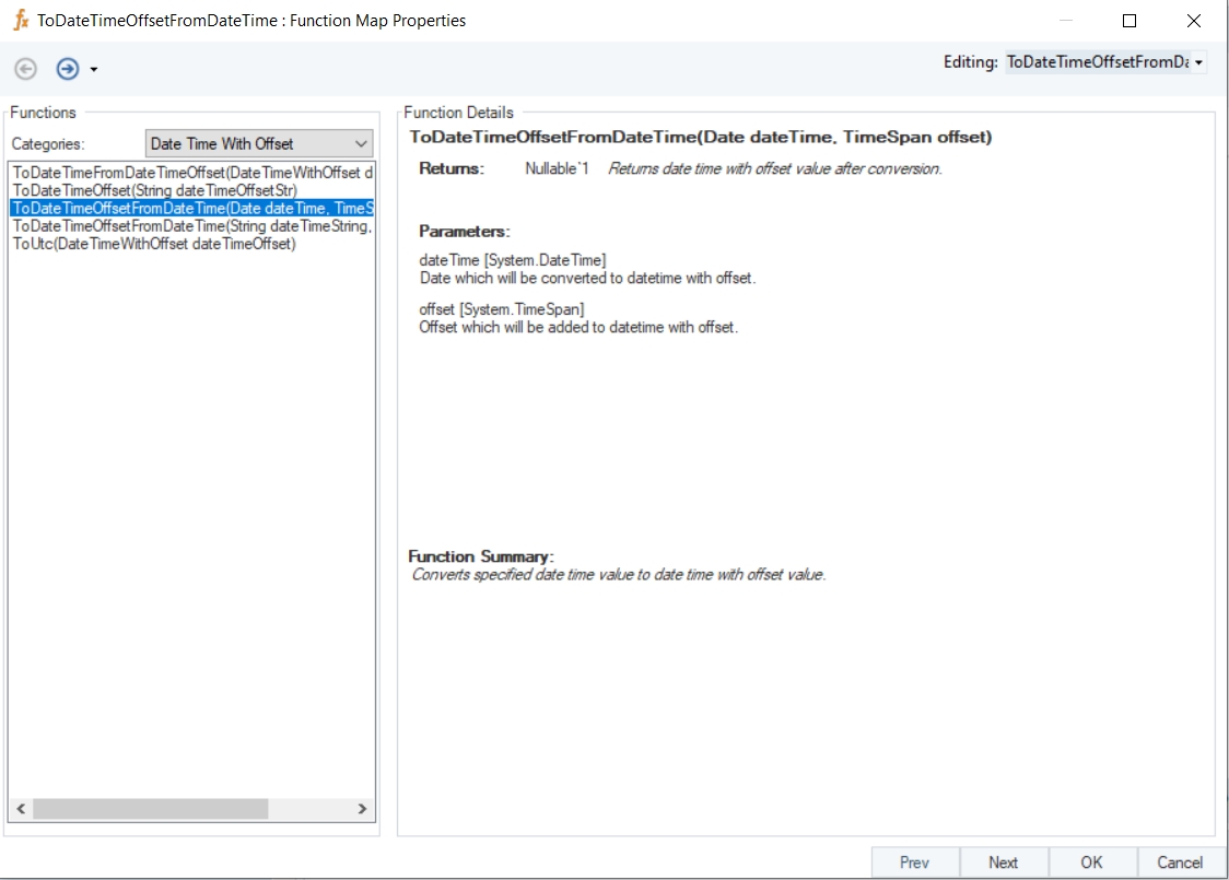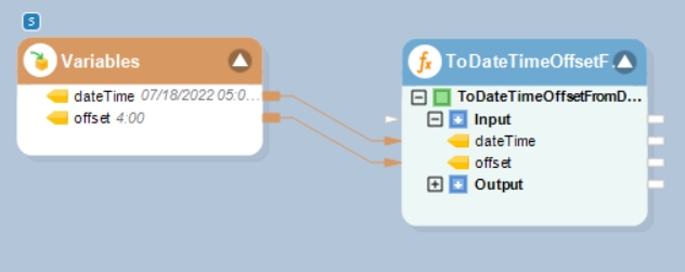In this example, we will pass a date time value to the function transformation object using a Variables object.