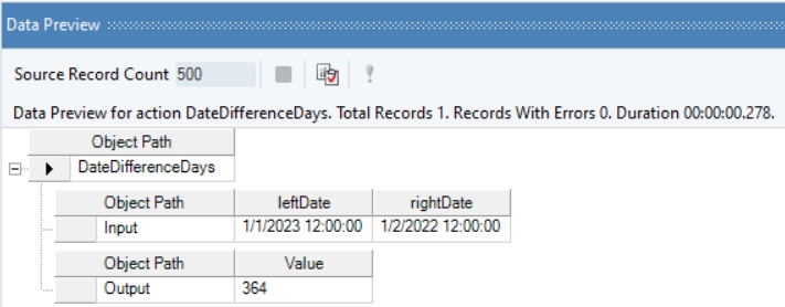 In this example, we will pass date time values to be subtracted to the function transformation object using a Variables object.