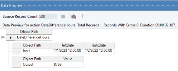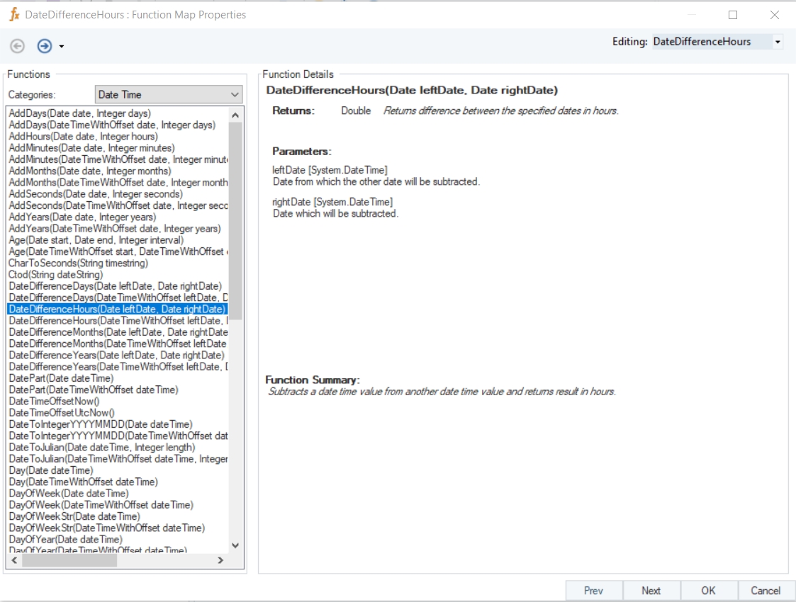 In this example, we will pass date time values to be subtracted to the function transformation object using a Variables object.