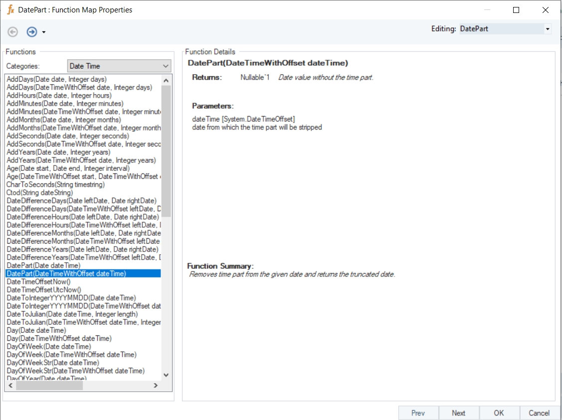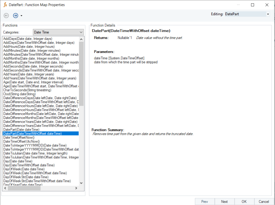 In the output window, you can see that the provided date-time value has been returned with the time-offset part reset to 12:00:00 AM.