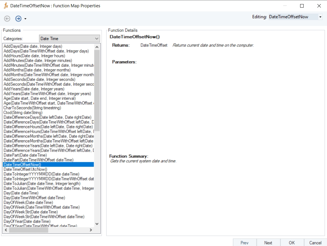 In this example, we will drag-and-drop the DateTimeOffsetNow function transformation object to the dataflow designer window.