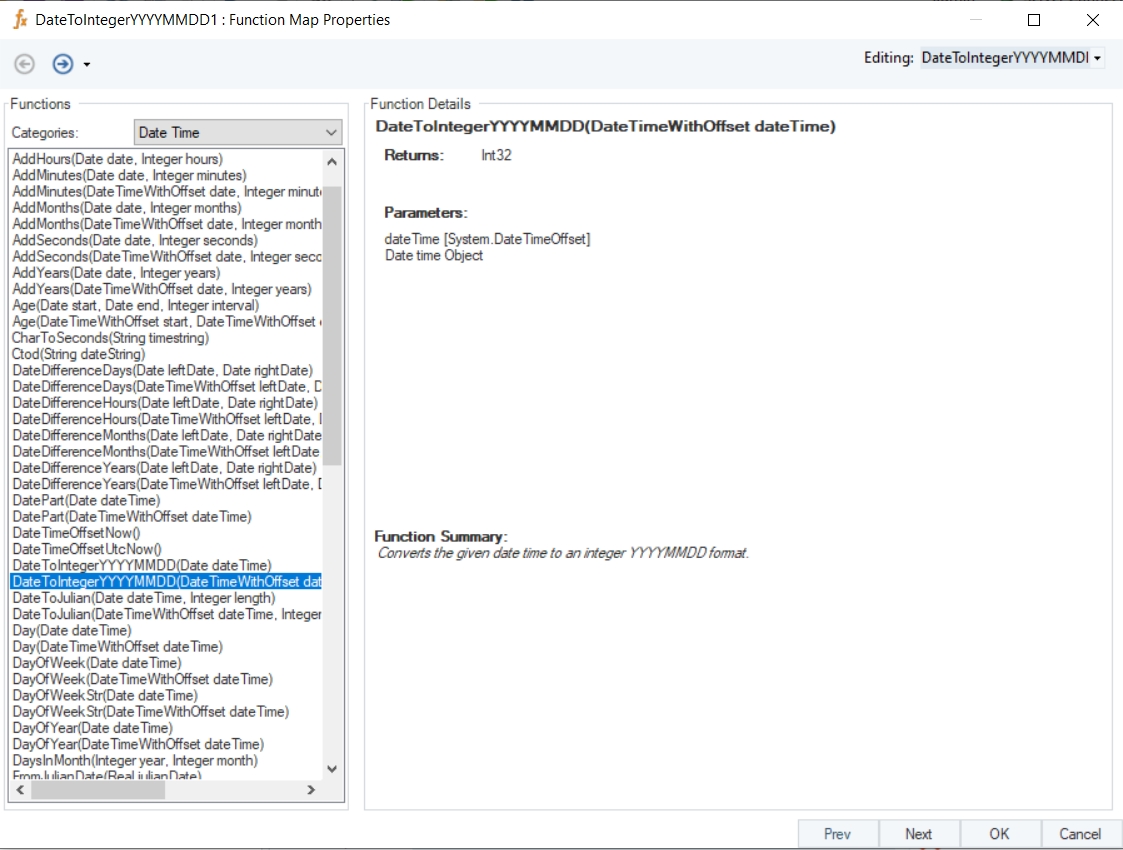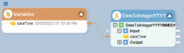 In this example, we will pass a date time value to the function transformation object using a Variables object.