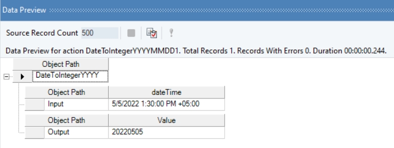In the output window, you can see that the provided value has been converted into an integer value, representing the specified date.