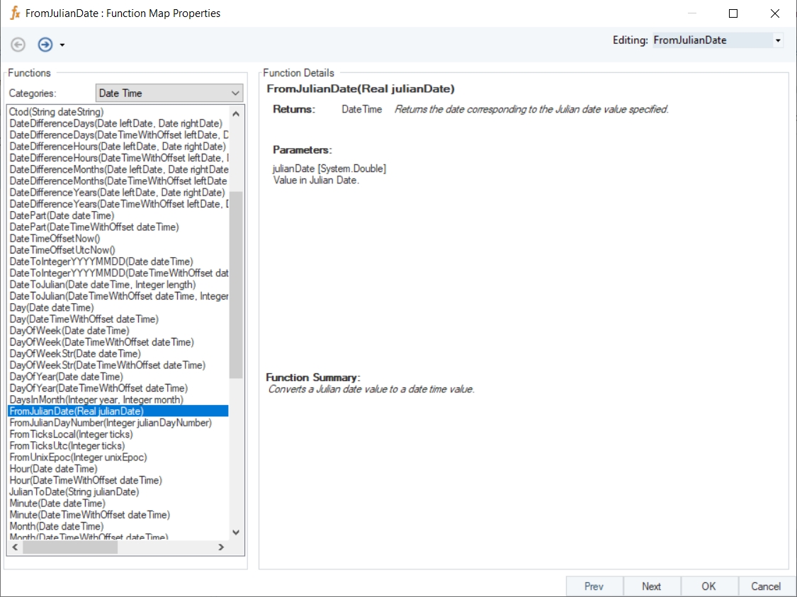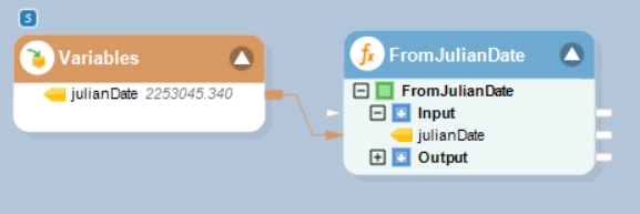 In this example, we will pass a real value, representing a Julian date, to the function transformation object using a Variables object.