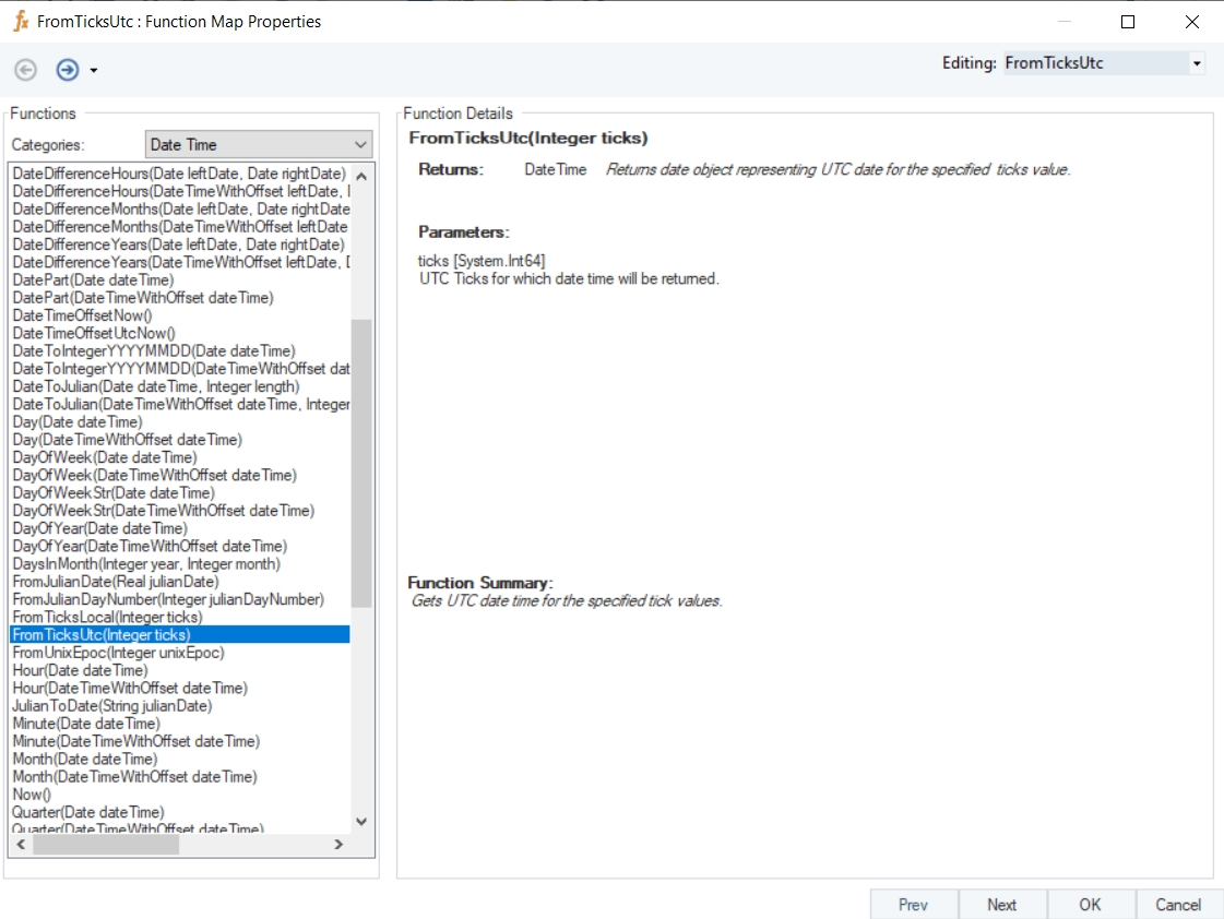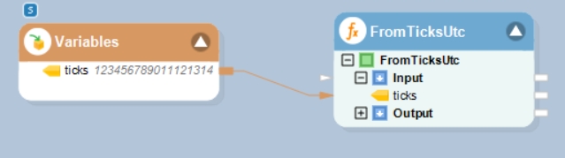 In this example, we will pass an integer value, representing ticks, to the function transformation object using a Variables object.