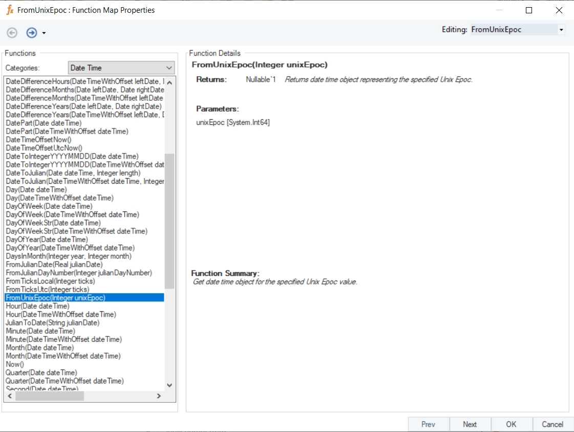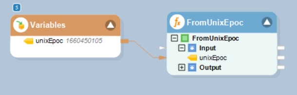 In this example, we will pass an integer value, representing Unix epoch, to the function transformation object using a Variables object.