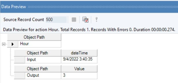 In the output window, you can see that the hour part of the provided date time value has been returned.