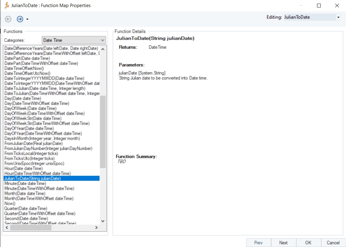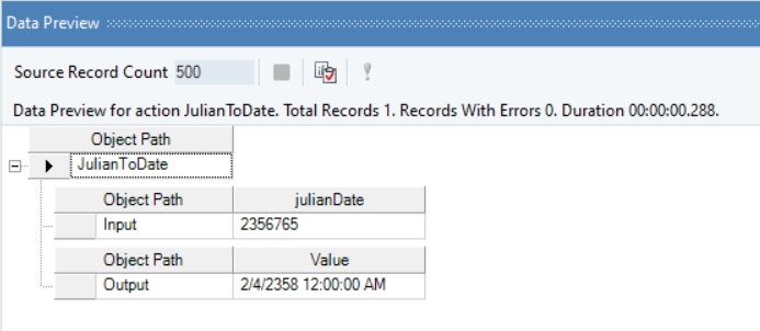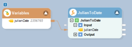 In this example, we will pass a Julian date string to the function transformation object using a Variables object.