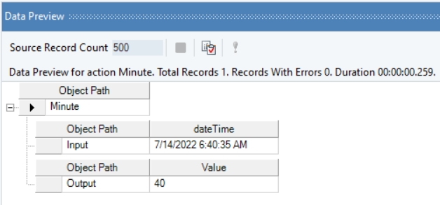 In the output window, you can see that the minute part of the provided date time value has been returned.