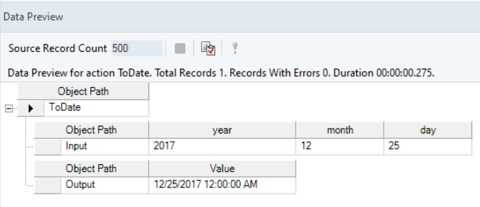 In the output window, you can see that the provided values have been converted into a DateTime value.