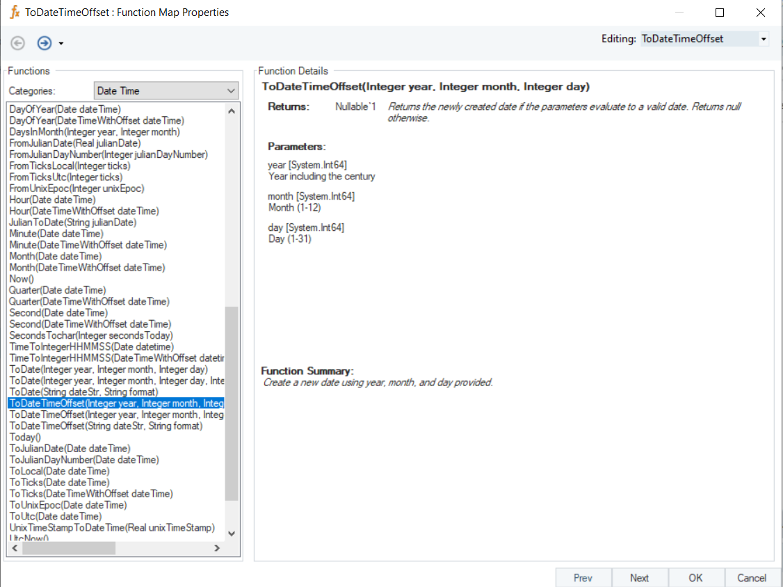 | Syntax      | ToDateTimeOffset (Integer year, Integer month, Integer day)                                                                                |