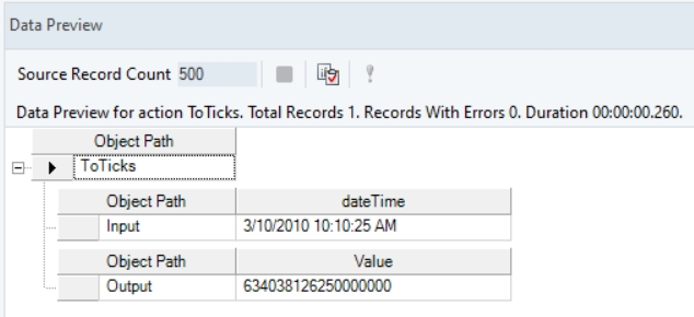 In the output window, you can see that the provided date time value has been converted into a Ticks value.