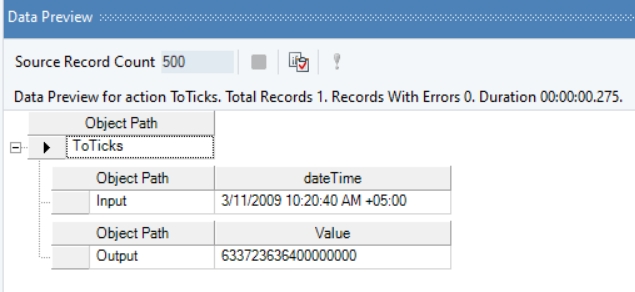 In the output window, you can see that the provided date time offset value has been converted into a Ticks value.