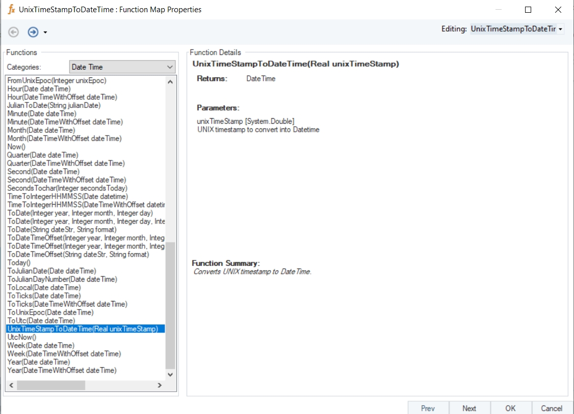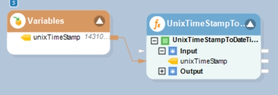 In this example, we will pass a Unix time stamp value to the function transformation object using a Variables object.