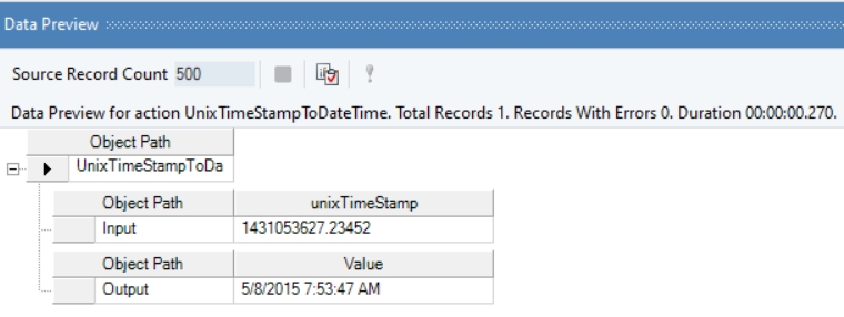 In the output window, you can see that the provided Unix time stamp value has been converted into a date time value.