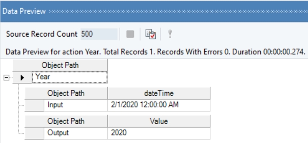 In the output window, you can see that the year part of the provided date time value has been returned.
