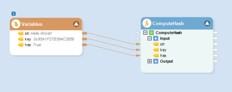 Right-click on the function transformation object and select Preview Output. You can see that the tool has returned the hexadecimal hashed value of the specified string, using the specified key value.