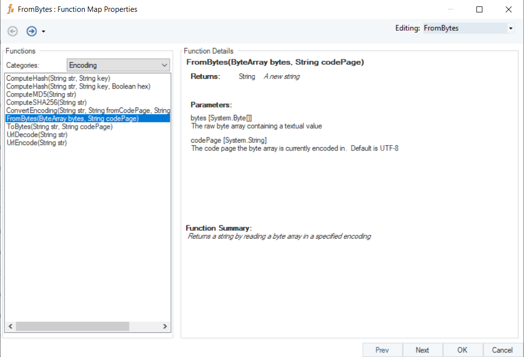 In this example, we are passing the required parameters to the function transformation object using a Variables object and a ToByte object.