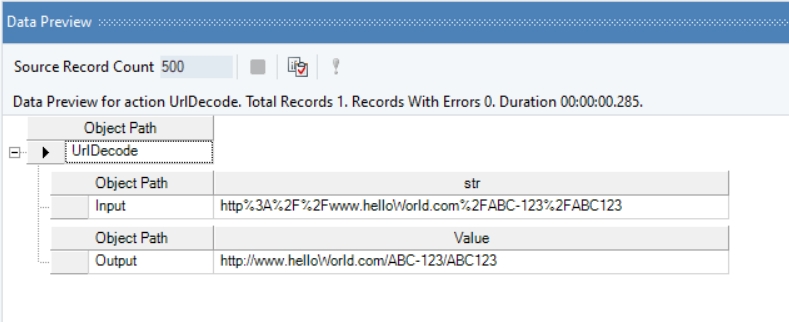 Right-click on the function transformation object and select Preview Output. You can see that Astera has returned the resolved URL value.