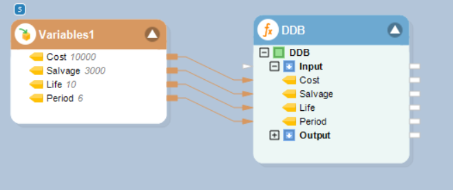 To calculate the depreciation value for the aforementioned example, we will be passing the required parameters to the function transformation object using a Variables object.