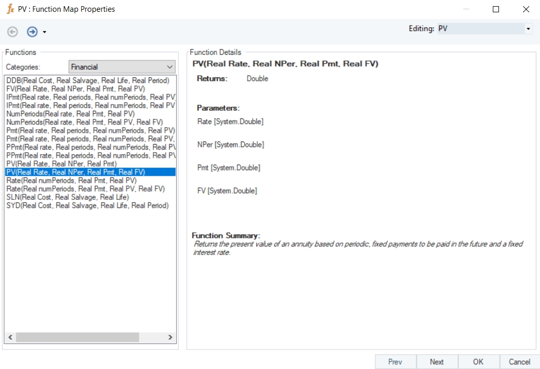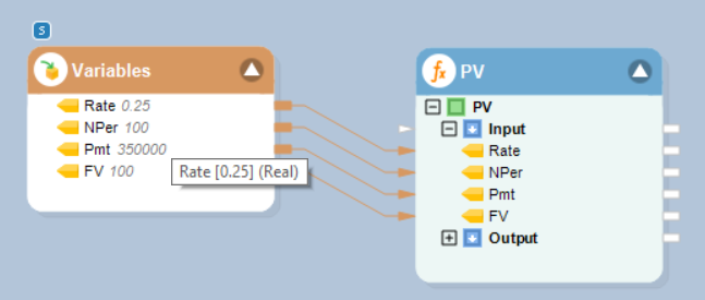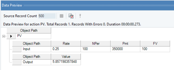 Right-click on the function transformation object and select Preview Output. You can see that Astera Data Stack has applied the PV function, and returned the present value, taking into account the specified Future Value.