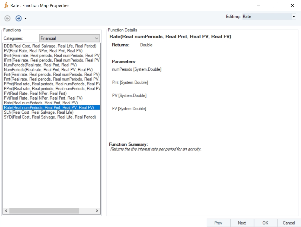 Right-click on the function transformation object and select Preview Output. You can see that Astera Data Stack has applied the Rate function, and returned the Interest rate value, while also considering the future value.