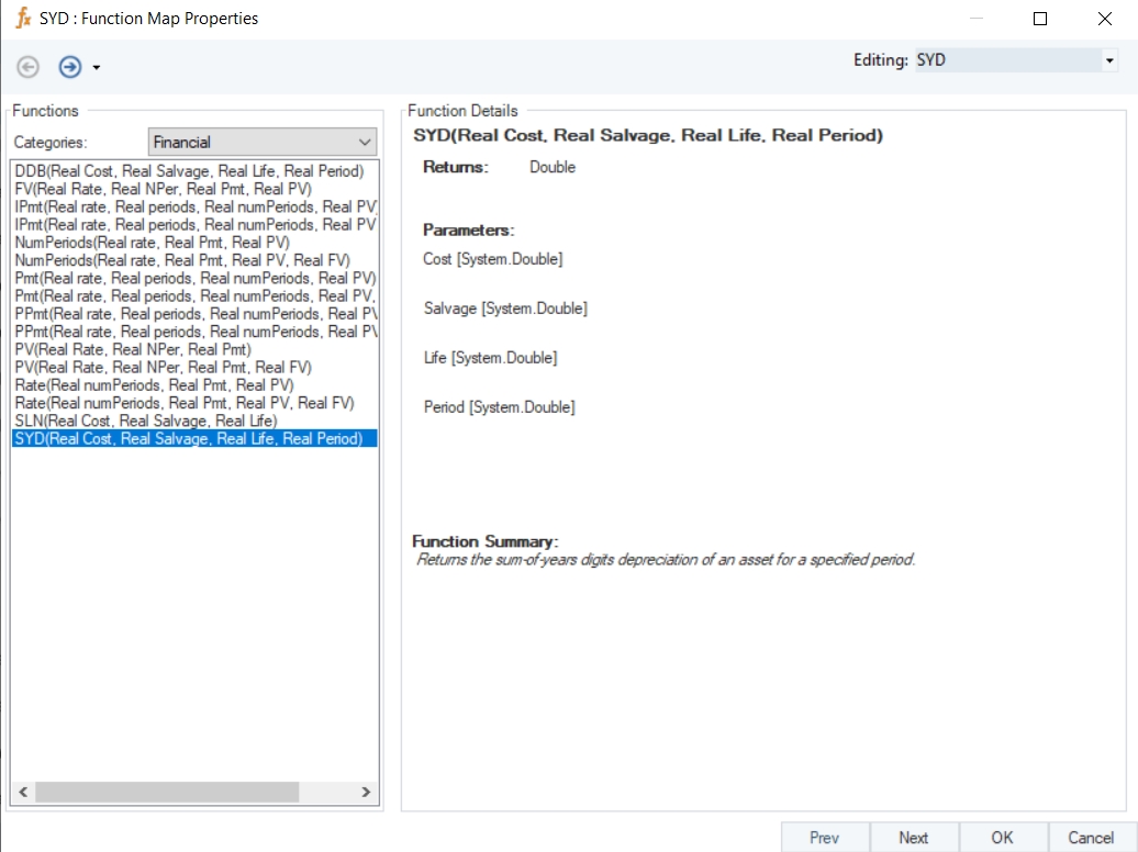 Returnsthe sum-of-years depreciation of an asset for a specified period.
