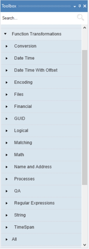 The Function Transformation functionality in Astera Data Stack is used to perform various data manipulation transformations, wherein Function Transformation objects are used to transform data based on certain logic. Astera Data Stack has a library of 290+ built-in functions which can be accessed from the Function Transformations section in the Toolbox.