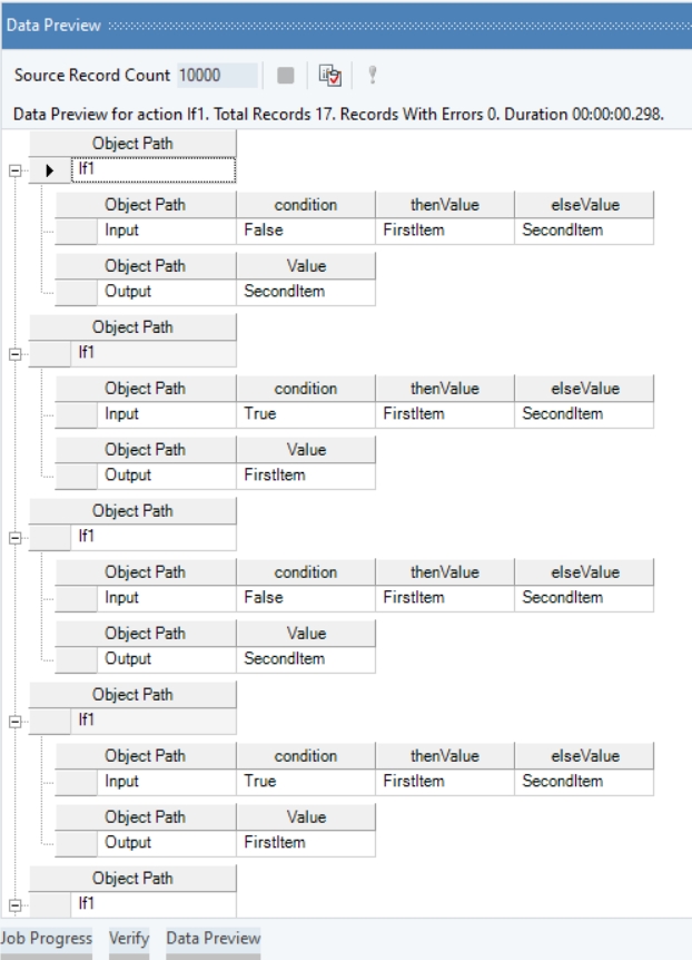 In the output, you can see that string values, FirstItem and SecondItem, have been returned depending on whether the Items field condition was met.