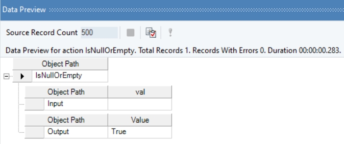 In the output, you can see that the Boolean value, True, has been returned as the passed value was empty or null.