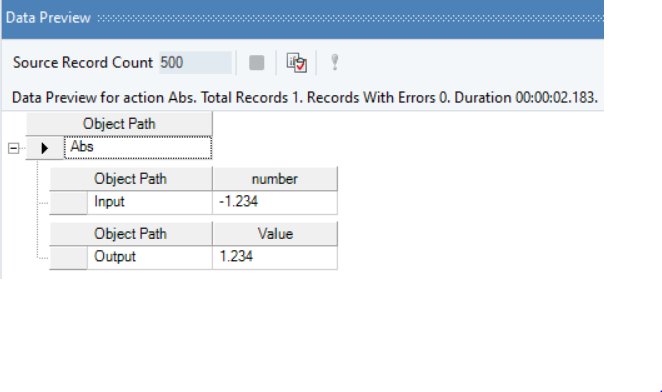 In the output window, you can see that the absolute value, 1.234, has been returned for the provided number value.