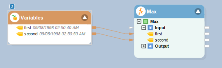 In this example, we are passing DateTime values to the function transformation object using a Variables object.
