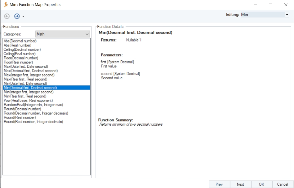 In this example, we are passing decimal values to the function transformation object using a Variables object.