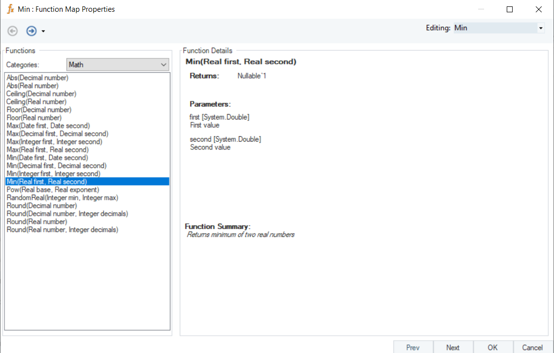 In this example, we are passing real values to the function transformation object using a Variables object.