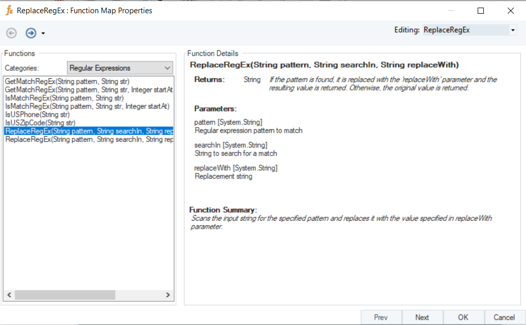 If the pattern is found, it is replaced with the ‘replaceWith’ parameter, and the resulting value is returned. Otherwise, the original value is returned.