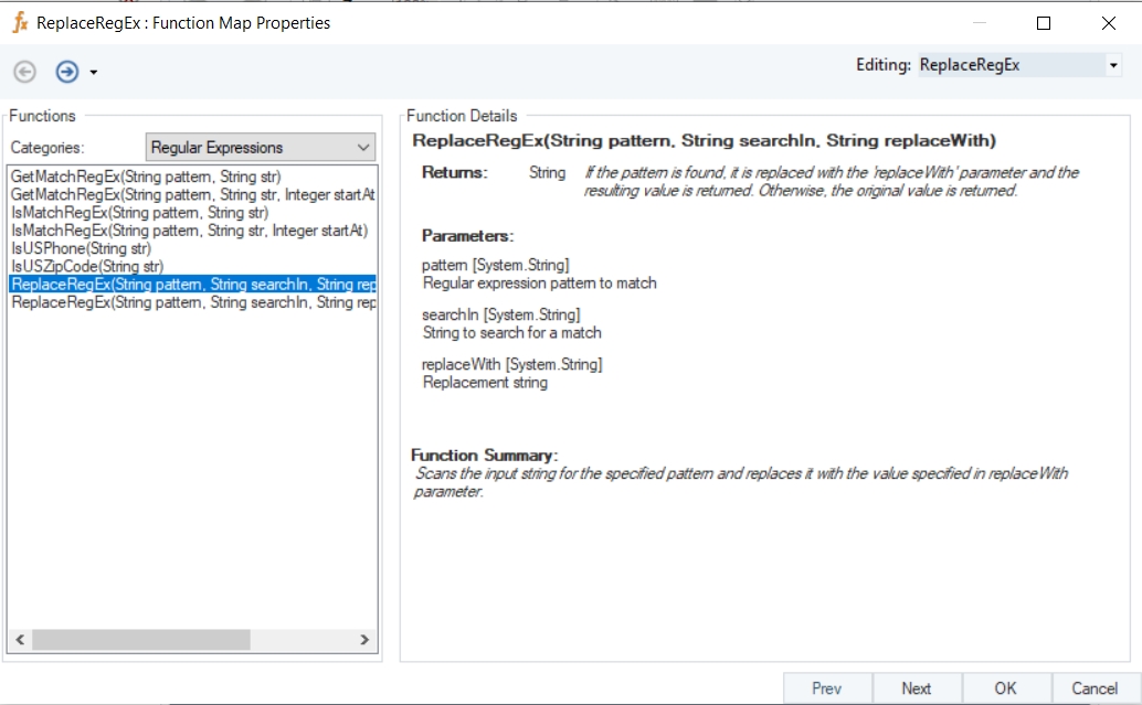ReplaceRegEx (String pattern, String searchIn, String replaceWith)