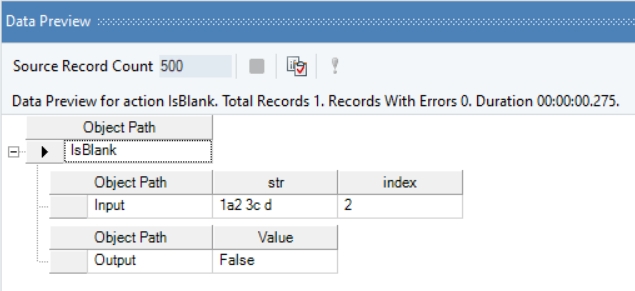 Right-click on the function transformation object and select Preview Output. You can see that Astera Data Stack has returned “True”, as the character in the specified numerical position is a white space.