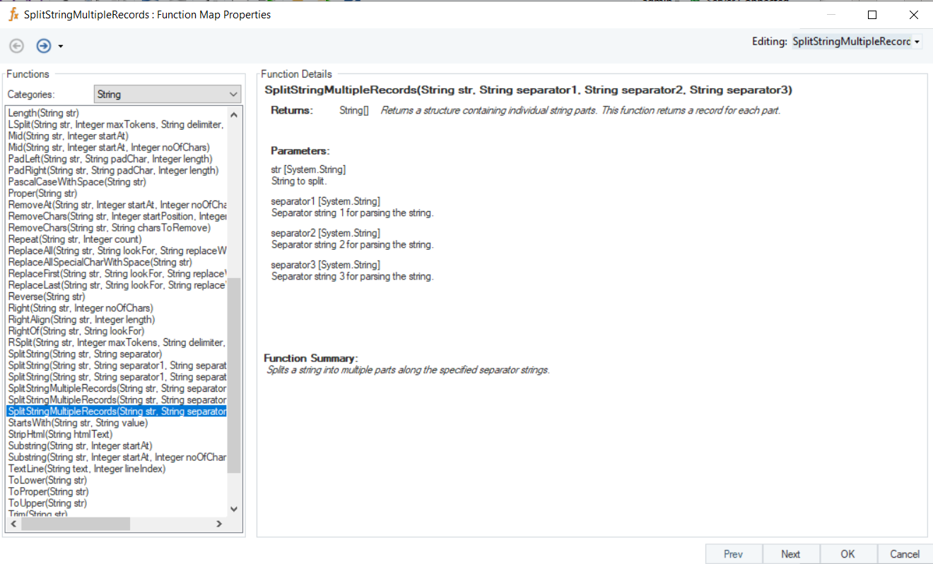 Right-click on the function transformation object and select Preview Output. You can see that Astera Data Stack has returned the different parts of the split string as separate records, on the basis of the specified delimiter (separator) values.