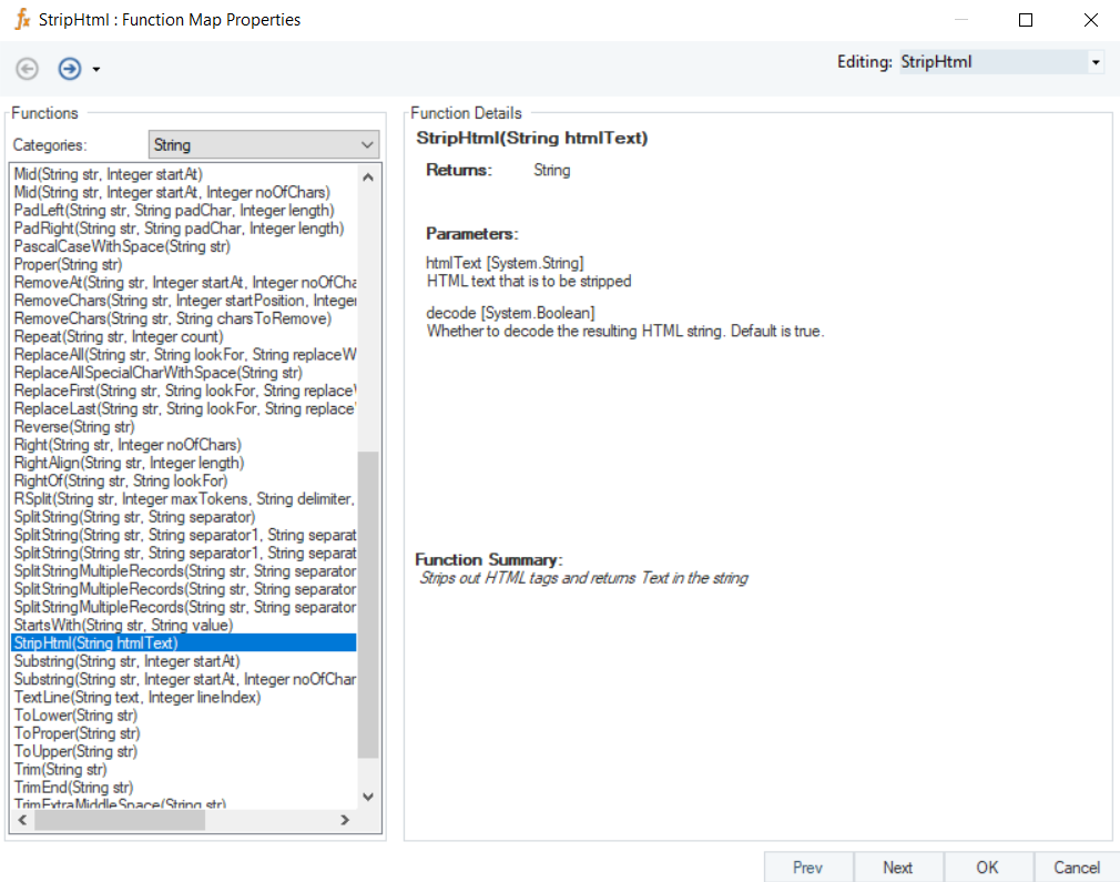 Right-click on the function transformation object and select Preview Output. You can see that Astera Data Stack has returned a string values, stripped of HTML tags.