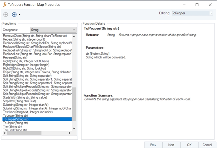 Converts the string argument into proper case by capitalizing the first letter of each word.